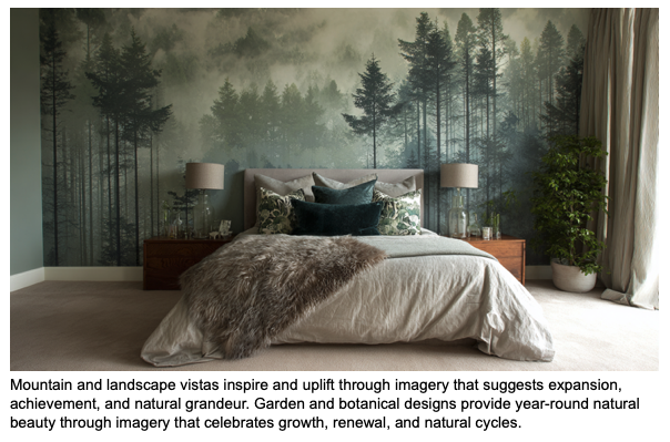 Stress reduction through nature-inspired and tranquil themes provides psychological escape from urban environments and daily pressures. Natural imagery, water features, forest scenes, or garden representations connect occupants with calming natural environments.