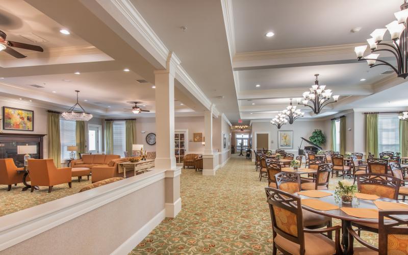 Residents live in studios or one-bedroom apartments with plenty of room for furniture and belongings. Each unit comes with a kitchenette, private bathroom, Wi-Fi and emergency call system. Common areas for residents include a TV lounge, library, game room and outdoor patio.