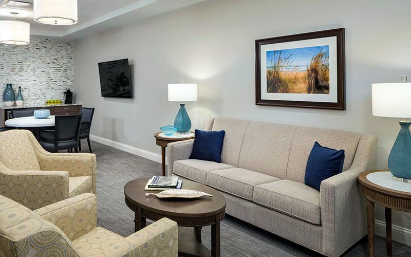 Community features include a courtyard with koi pond and beautifully landscaped grounds. Inside, you'll find a restaurant serving three chef-prepared meals a day, bistro, theater, salon and barber shop, library, and inviting common spaces for gathering with neighbors.