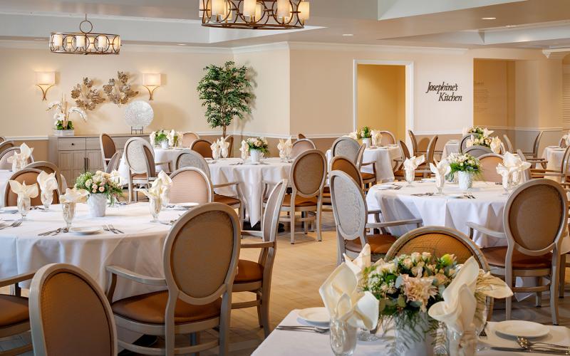 Everything you need to thrive physically, socially and mentally is at your fingertips ? a professionally managed fitness center with on-site therapy services, a licensed nurse and well-trained staff on-site 24/7, innovative, award-winning memory enrichment programs, and a vibrant social activity calendar. You'll enjoy restaurant-style dining and chef-prepared meals with new friends at Josephine's Kitchen, get pampered in our full-service salon, and schedule complimentary transportation for personal excursions and appointments with our concierge. Our management team and specially trained staff provides quality care and just the right balance of service and support to suit any lifestyle.