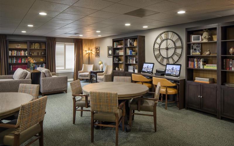 Equally significant as Belmont's handy location is the fact that it was built to provide a higher standard of care for assisted living. Mature landscaping and generous grounds provide a variety of enjoyable outdoor areas and activities such as bocce ball and a three-hole golf course. Inside, residents enjoy Belmont's distinctive interiors and signature programs in hospitality, dining and activities. And all residents are cared for by a stable and caring team of professionals who live in the local community.