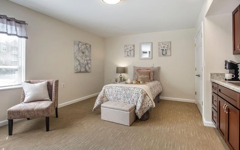 Our peaceful setting, restaurant style dining experience, activities and beautiful setting combine to create a wonderful living environment everyday. Our genuine caring staff, home style meals, daily activities add to our residents' experience.