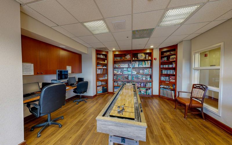 Residents enjoy the many different nooks and lounge areas for reading, chatting, playing cards, or simply enjoying the fireplace. The media centers are great spaces to comfortably watch a film on a large screen with friends. For game and puzzle fans, there is an impressive collection to choose from and dedicated large tables to use.