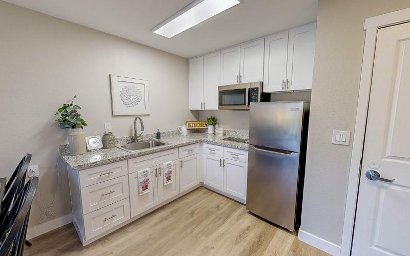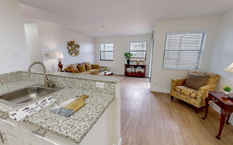 Our spacious apartments all feature balconies or patios, a full-size refrigerator, stovetop burners, and microwaves, granite counters, and ample counter and closet space. We are tucked away on a beautiful hillside, with views across the bay to Mt. Tamalpais.