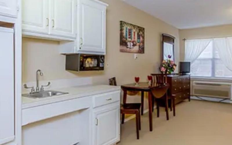 - Kitchenettes with refrigerator, microwaves, sinks and cabinet for storage