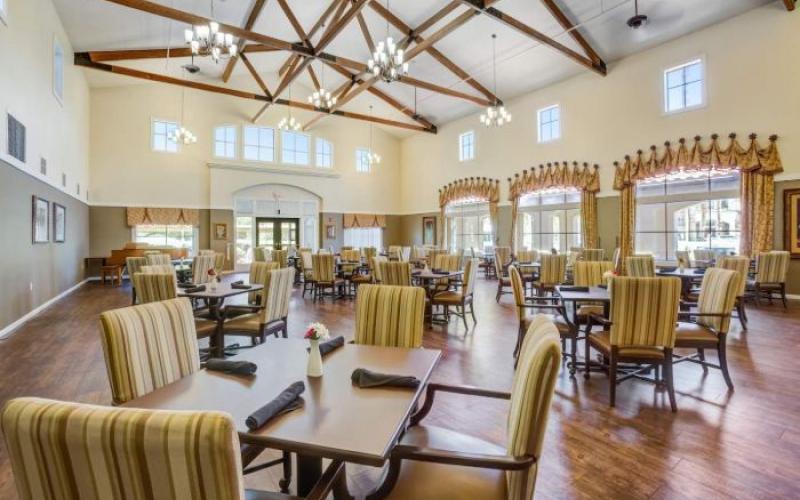 The on-site dining room offers chef-prepared meals with varied choices-including special diets like diabetic, kosher, and vegetarian-with guests welcome at mealtime. Room service and in-room kitchenettes are also available.