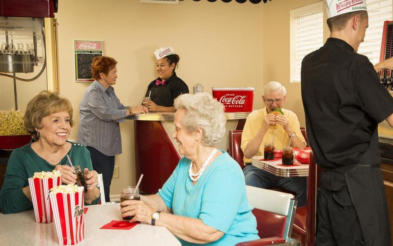 Our residents enjoy a vibrant, stimulating atmosphere where they can remain active, pursue their interests, and share the companionship of family, friends, and neighbors. We offer plenty of lifestyle amenities and services, including restaurant-style dining, an on-site chapel service, a 50's style diner, an indoor pool, recreational activities, and community outings.
