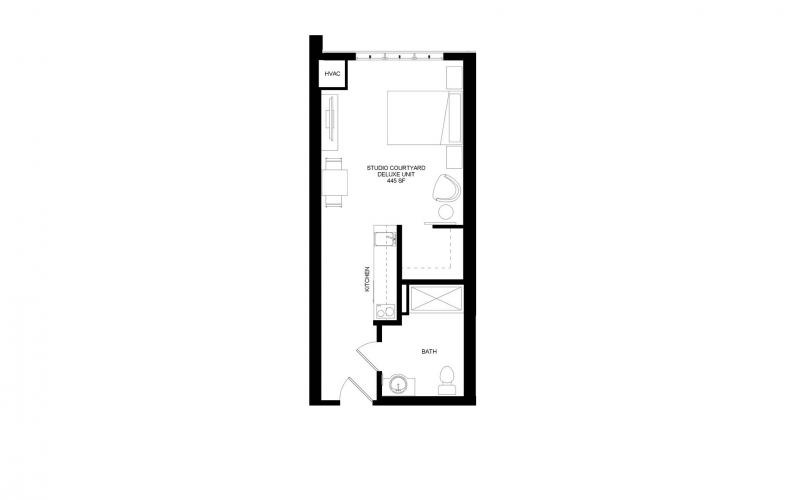 A monthly rental community with luxurious accommodations including studio and one-bedroom apartments.