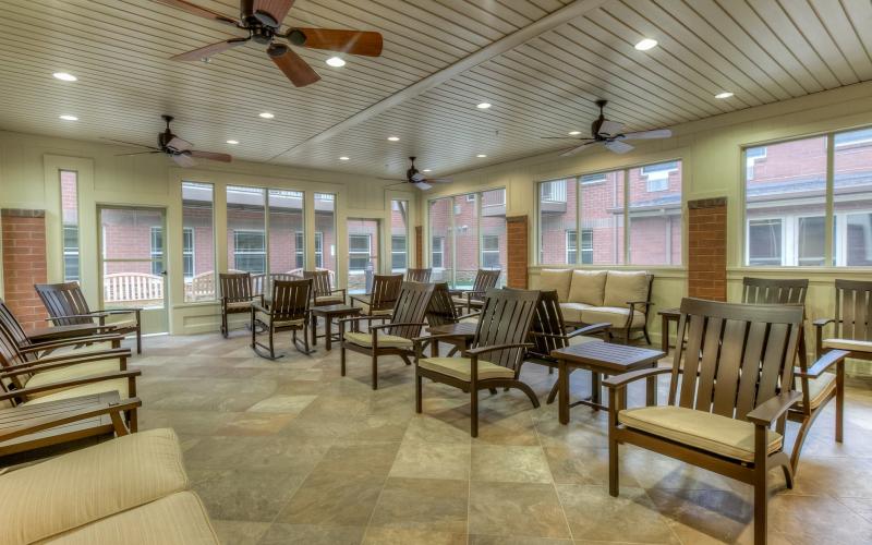 The Lodge at Natchez Trace is a residential setting designed in the fashion of a country vacation home or cabin with the amenities of the old-time southern resorts. The goal of The Lodge is to create a plan that meets the unique needs for assistance with activities of daily living for each resident. Bathing, personal hygiene, dressing and toileting help are provided by the certified nursing assistants with dignity in the privacy of the resident's apartment. The resident is encouraged to do as much for themselves as they are capable, maintaining their abilities. Residents' safety is the top priority of The Lodge at Natchez Trace, and it has created a secure neighborhood for individuals with Alzheimer's Disease and other forms of memory loss. Staff, specially trained in understanding and meeting the needs of individuals with dementia, will create a plan to maximize the senior's independence while enhancing their safety. Unique activities programs will create a positive stimulating environment that fosters positive emotional experiences for all residents.