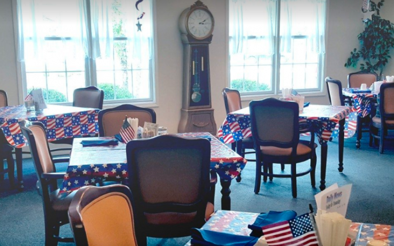 - Three healthy meals served restaurant-style in our beautiful dining room