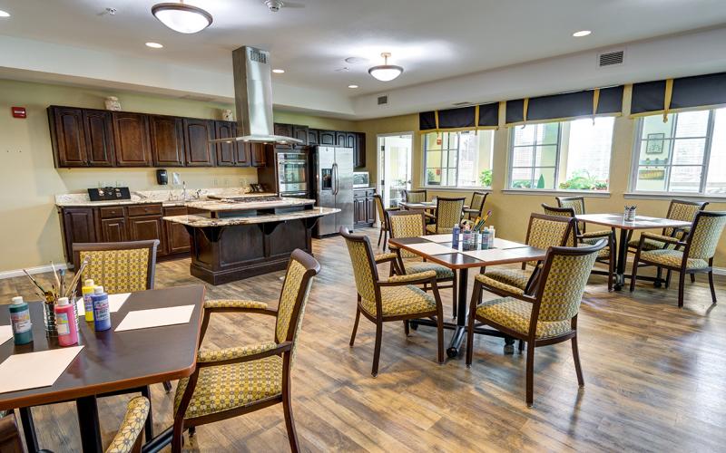 We believe in the power of good nutrition, fellowship and freshly prepared, home-cooked meals, so we employ an Executive Chef to plan our menus, train our staff and create a delicious restaurant-style dining experience. We ask for our residents' suggestions and recipes to incorporate comfort foods and personal favorites and we serve breakfast throughout the day.