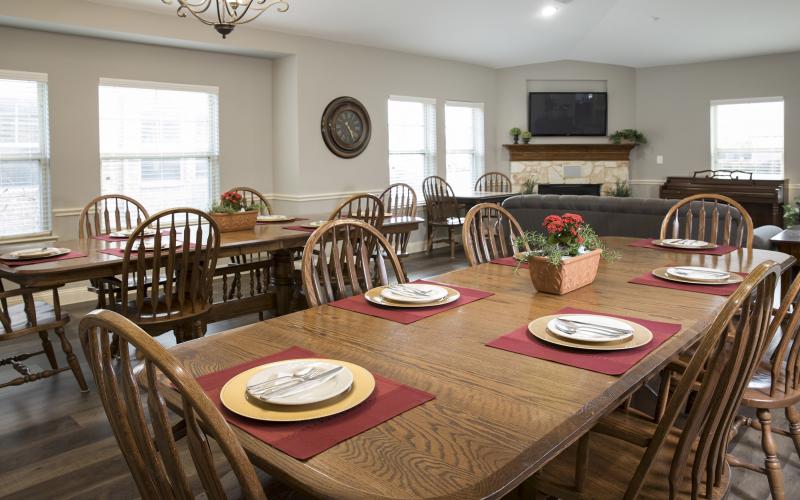 Imagine a neighborhood filled with unique houses, beautiful landscaping and antique street lights. A campus of homes designed with seniors in mind. Front porches with rocking chairs, fireplaces with glowing hearths and country kitchens with family style dining; each house is created to feel - just like home.