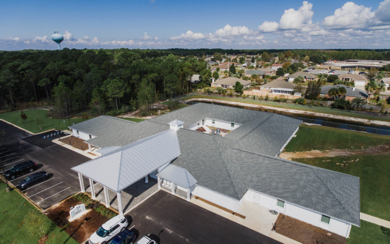 - Lounge room, activities and movies room, beauty parlor, dining room, and rocking chair equipped courtyard