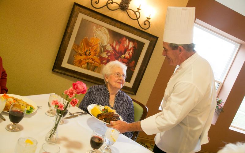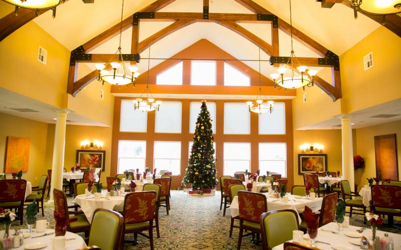 The stunning main dining room is the setting for taste-tempting meals prepared each day by our chef in our first class commercial kitchen.