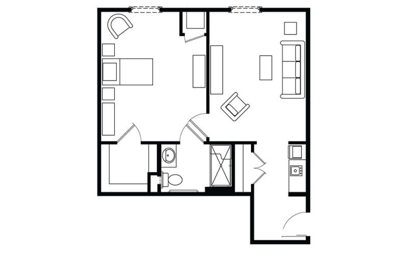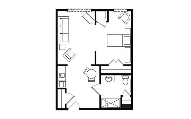 Residents and their families can choose from private or companion suites with private, fully-accessible bathrooms. ENGAGE residents and families benefit from a private community entrance, secure outdoor courtyard and innovative village design.