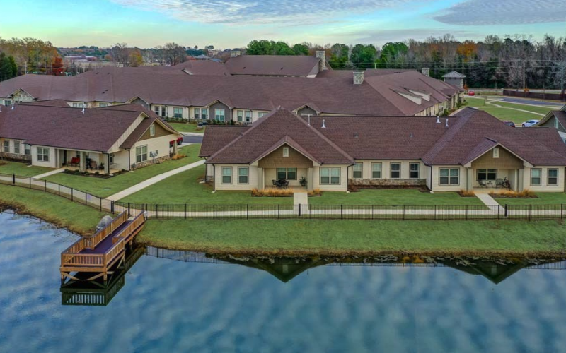 The Ridgemere senior living community is on a beautiful 14-acre setting near Little Rock in Conway, Arkansas.