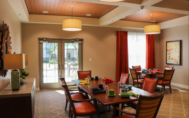 Savanna House is located in the lively center of Gilbert, Arizona with convenient access to grocery stores, shopping, and entertainment. The community features abundant amenities such as an expansive center courtyard, movie theater, entertainment and game rooms, arts and crafts rooms, movie theater, library and puzzle room, ice cream parlor, putting green, two beauty salons, and onsite physical, occupational and speech therapy services through Ageility.