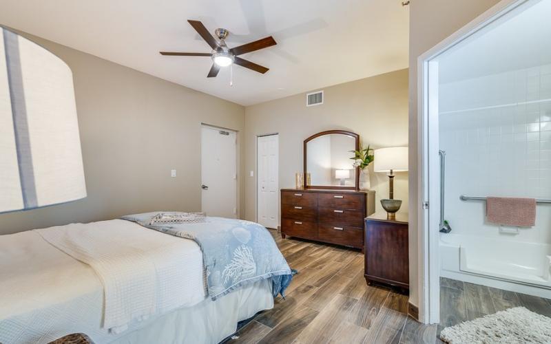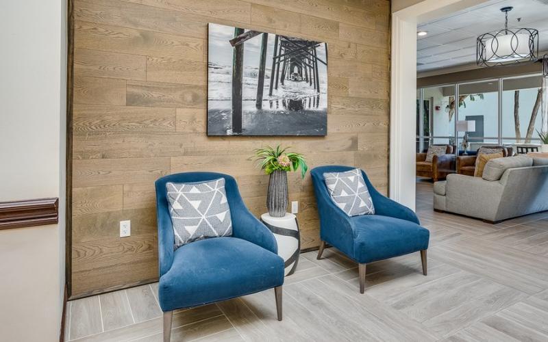 The community features spacious studio suites designed for comfort and accessibility, with options including wheelchair-accessible bathrooms, kitchenettes, and private balconies. Residents enjoy chef-prepared meals in a restaurant-style dining room, accommodating various dietary requirements such as vegan, vegetarian, and gluten-free diets. Housekeeping and laundry services are provided, allowing residents to focus on enjoying their new home.
