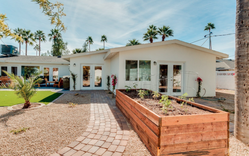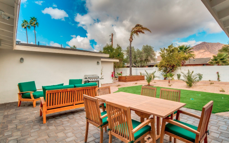 Outdoor Space: Our homes offer large French doors that open to a beautiful outdoor space with cushioned seating, BBQ grill, game lawn, walking paths, raised garden beds, beautiful landscaping, and views of Camelback Mountain.